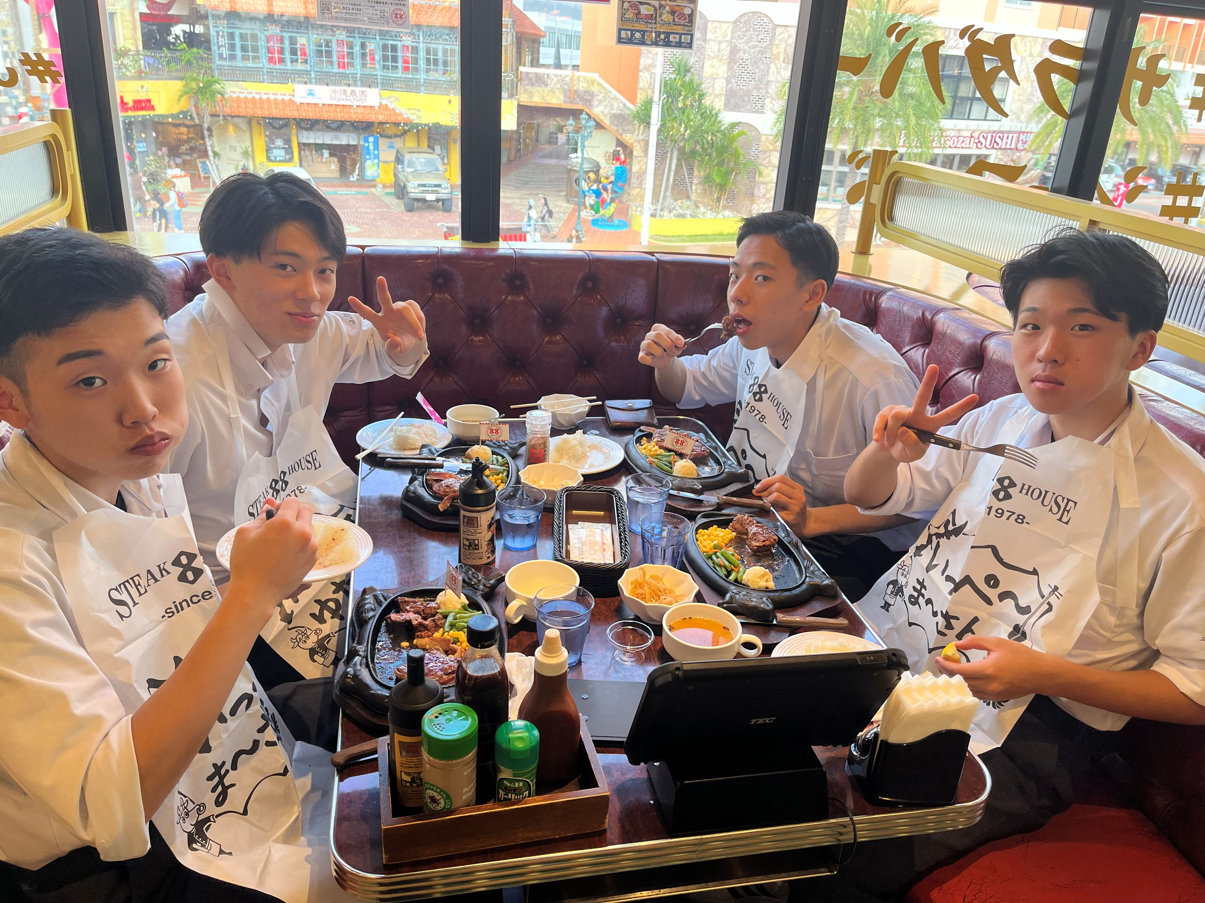 平和の礎、アメリカンビレッジでの食事の様子になります。