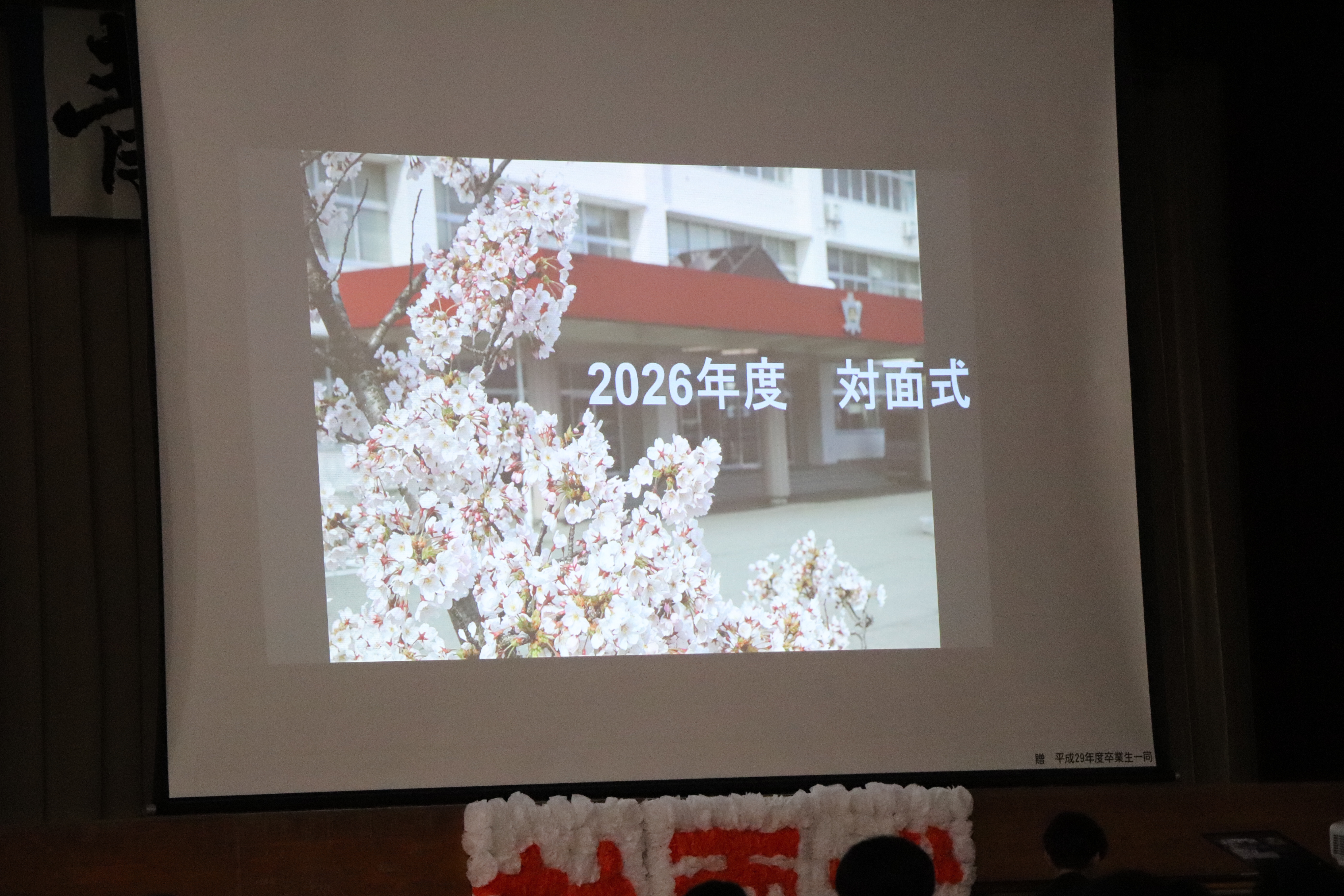 期待と不安を抱いた新入生を温かい拍手で迎え、スライドによる行事紹介、インタビュー形式での1学年の先生紹介、そして工夫を凝らした部活動紹介を行いました。