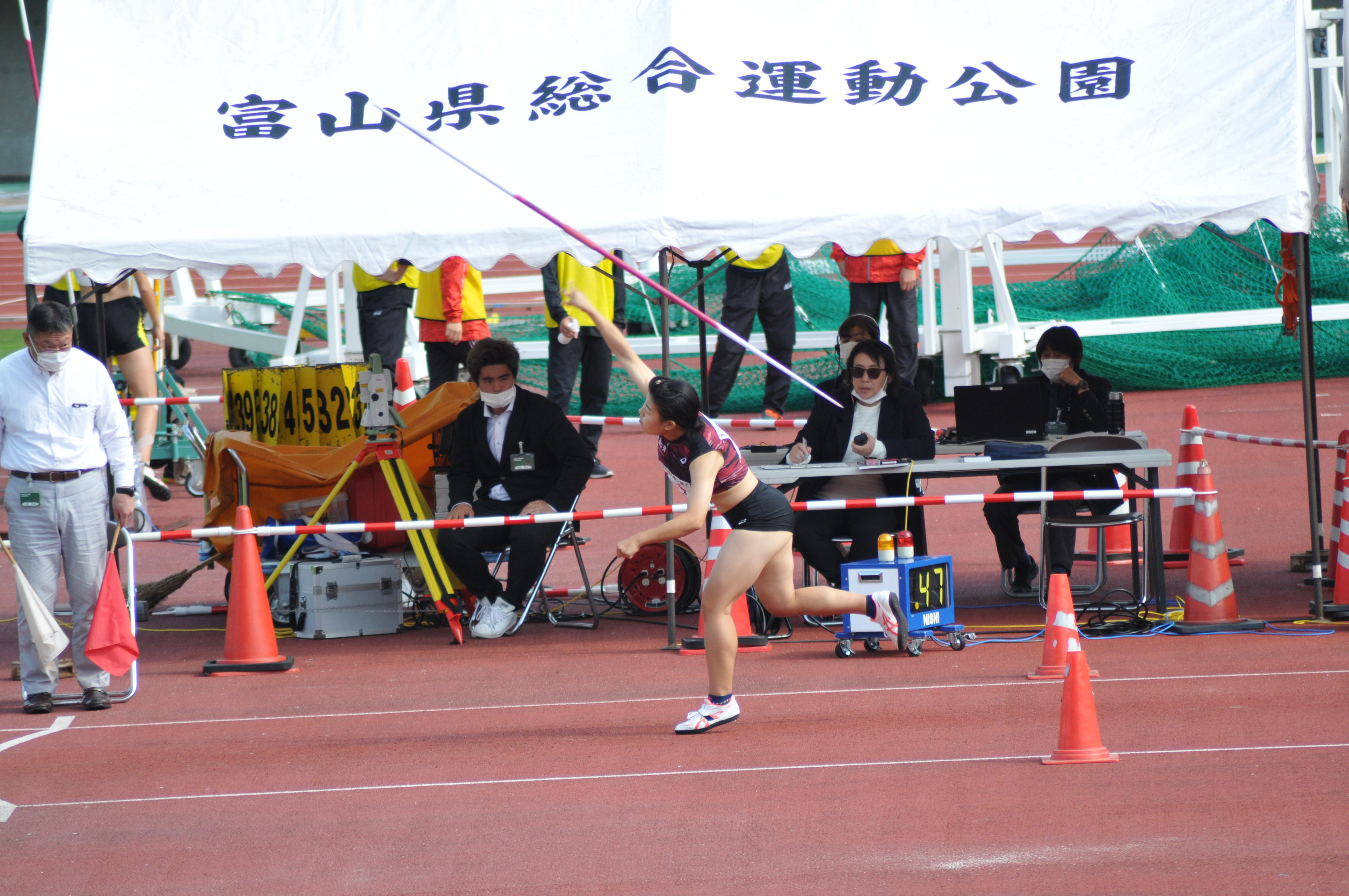 10/22(土)~10/23(日) 富山県総合運動公園陸上競技場にて行われた第27回北信越高等学校新人陸上競技大会に、七種競技に丸山夏瑛さんが出場しました。体験学習旅行からそのまま参加し、調整練習も全く行えない中での参加でした。総合得点は14位という結果でしたが、走幅跳とやり投では自己記録を更新することができました。